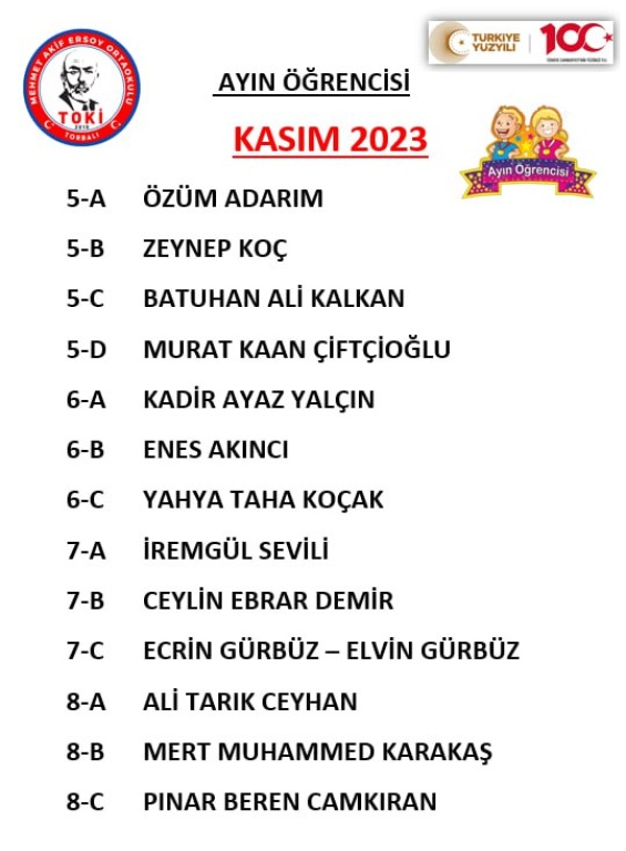 Kasım Ayı Ayın Öğrencileri Ve Yeşil Kart Alan Öğrenciler